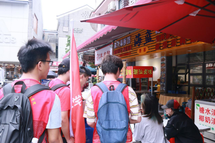 伴着阳朔浓郁的风土人情,实践团队成员乘车来到桂林阳朔西街进行普通话的推广宣传。在实践中,团队成员深入西街街道内开展宣传,并向沿途的游客递上实践团队的“推普扇”以及相关的推普物资。团队成员从游客的反馈中得知,阳朔西街当地的很多人都会说普通话,甚至一些商店的店员具备有能够用外语与外国友人进行沟通交流的能力。同时实践团队成员在途径外国友人身边时,也发现一些友人能够正常使用普通话与当地商店店员进行交流。由此可见,不论是普通话还是外语,在阳朔这样的旅游景区中语言文字推广程度是比较高的。