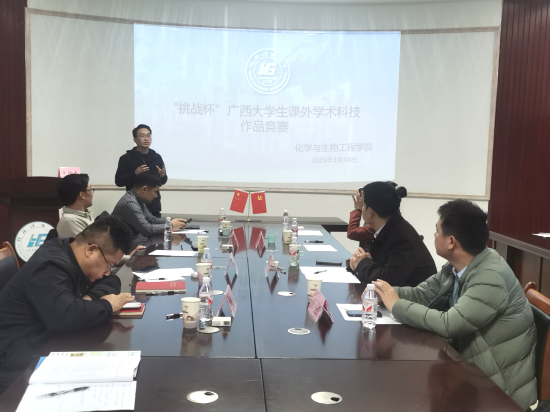 为深入贯彻党的二十大和二十届二中、三中全会精神,认真落实习近平总书记关于科技创新的重要论述,更加充分发挥“挑战杯”竞赛在引领广大青年学生踊跃投身科技创新的牵引力、组织力和影响力。3月14日上午,学院在12215会议室开展“挑战杯”全国大学生课外学术科技作品竞赛院级选拔赛。学校创新创业专职副院长唐红兵、学院党委副书记李少华、校团委科技实践部部长王凯浩、环境科学与工程学院学工组长刘砥、环境科学与工程学院团委书记孙云龙、外国语学院团委书记舒强、公共管理学院团委书记余东东担任本次竞赛评委。