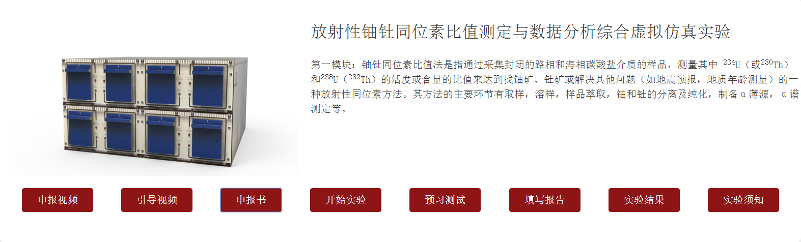 图1放射性铀钍同位素比值测定与数据分析虚拟仿真实验截图