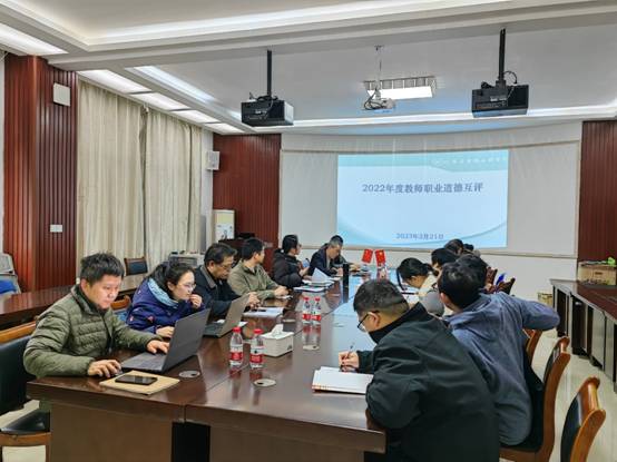 教师职业道德互评表》,在互评阶段,老师们大胆发言,既充分肯定同事们在2022年度取得的成绩,对于老师们的不足之处也给出了好的建议。