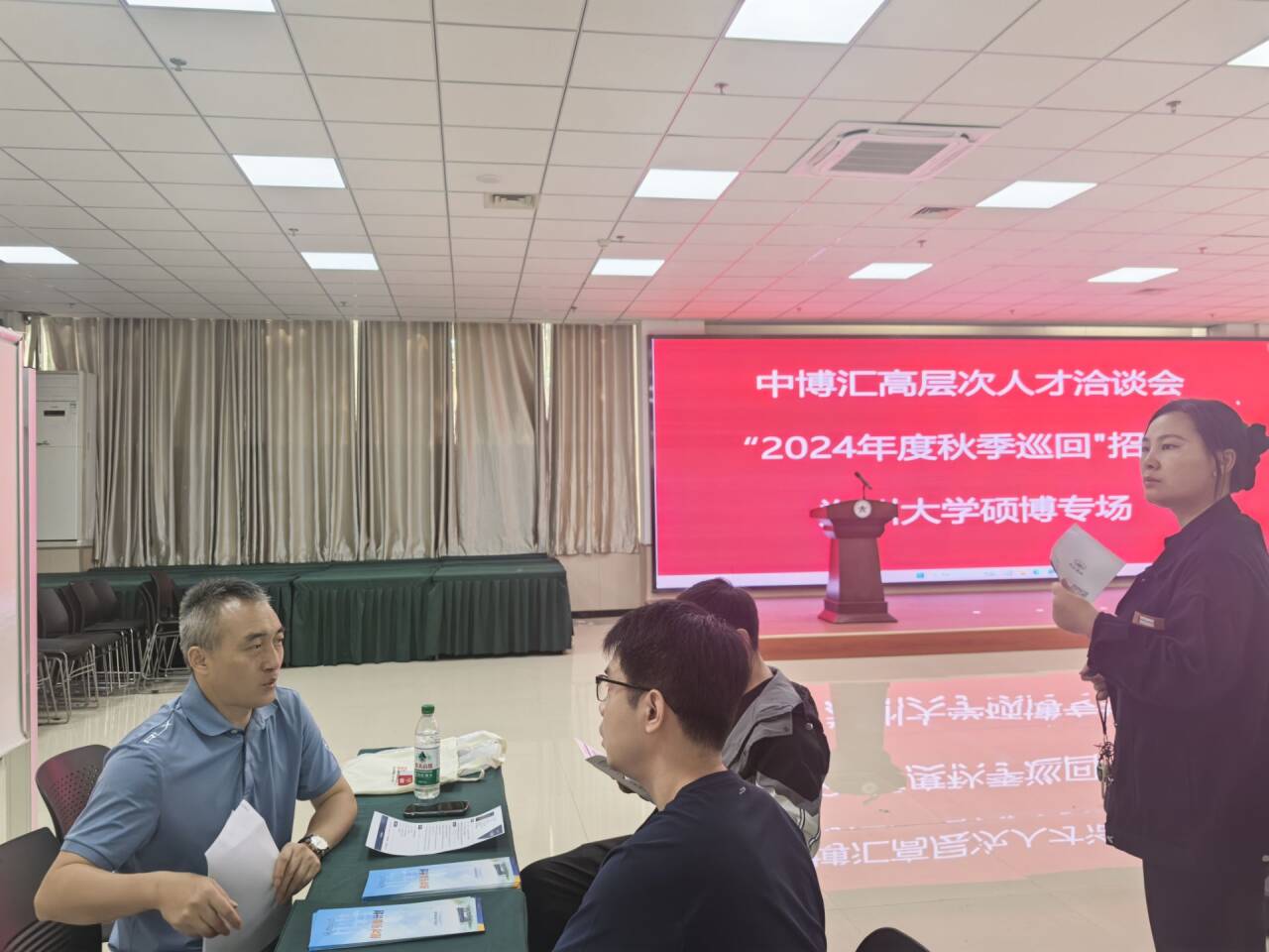 何方副院长一行参加“中博汇高层次人才洽谈会—2024年度秋季巡回招聘会”-9月28日郑州大学专场。 招聘会上,工作人员耐心细致地向博士们介绍了我校办学情况、学科建设、发展前景、引才政策等,并就编制、薪酬、个人发展等博士们关注的问题一一进行了解答。招聘会现场受到了大量相关专业博士人才的青睐,收到简历100余份,希望将来能够补充私房俱乐部
