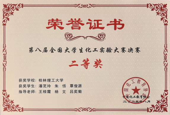 我院化工23级本科生潘芝玲、朱恬、覃俊源三位同学,在指导老师的悉心指导下,最终获得全国二等奖的优异成绩,另外,我校作为西南赛区承办单位获得了最佳组织奖。