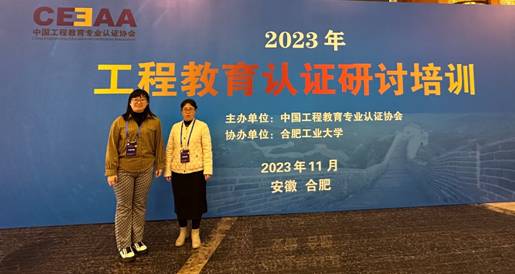 11月13日至15日,由中国工程教育专业认证协会主办、合肥工业大学协办的2023年第四期工程教育专业认证研讨培训会在合肥召开。化生学院生物工程专业负责人李霞副院长和生物工程教研室主任李静参加了本次研讨培训。