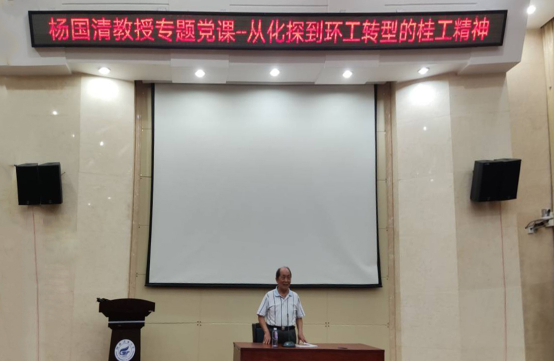 党委和环境科学与工程学院党委联合邀请学校退休干部杨国清教授于6月9日下午在萃华楼报告厅开展《从化探到环工转型的桂工精神》专题党课。本次党课由环境科学与工程学院党委书记姜子亮同志主持,私房俱乐部