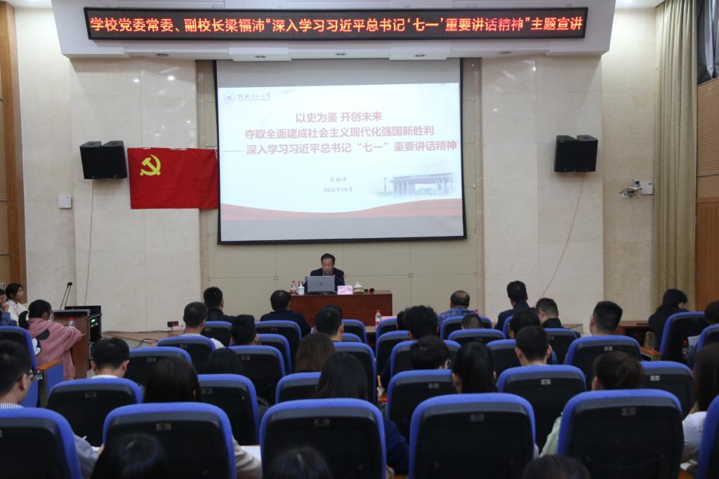 为深入学习习近平总书记“七一”重要讲话精神,学校党委常委、副校长梁福沛于10月26日下午在雁山校区萃华楼报告厅为党员师生作《以史为鉴,开创未来夺取全面建成社会主义现代化强国新胜利——深入学习习近平总书记“七一”重要讲话精神》专题宣讲,私房俱乐部