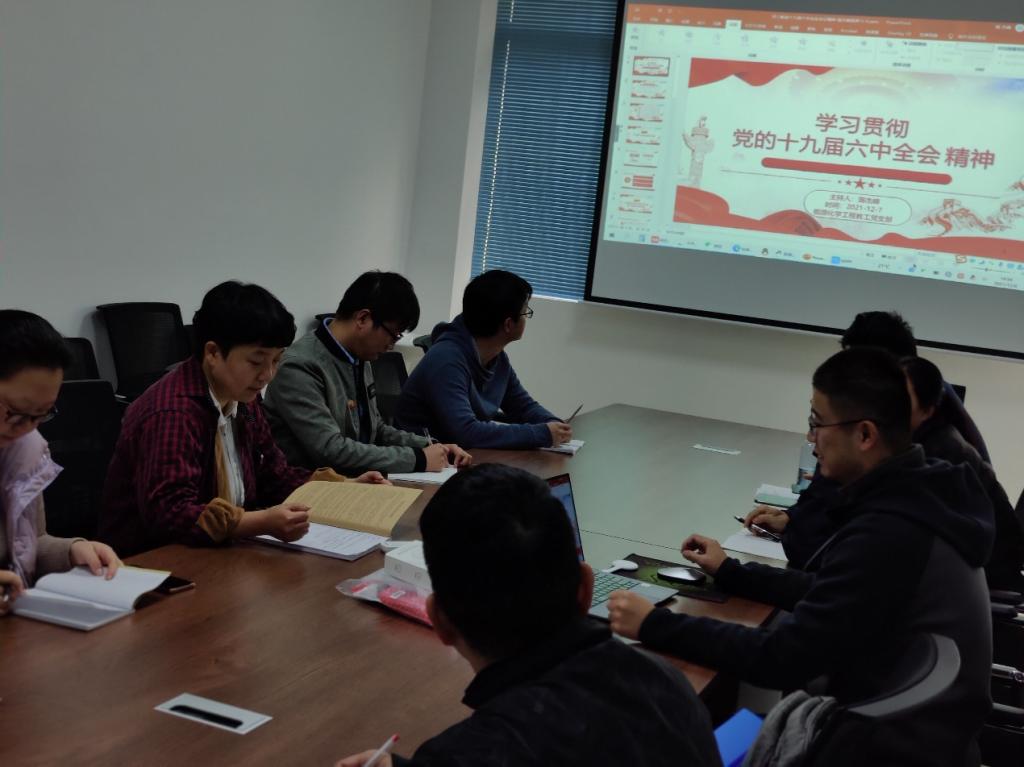 能源化学工程党支部在12115会议室开展“学习贯彻党的十九届六中全会精神”,党课由支部书记海杰峰同志主持。