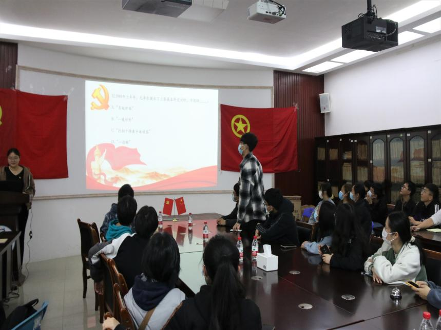 活动伊始,张可嘉同志开场,并请支部书记熊艳就此次活动进行开场发言,熊艳老师表示这次活动有利于党、团支部更好的理论学习,也能极大地促进党、团之间良好的互动关系,希望各位同学积极参与并乐在其中。紧接着,张可嘉同志介绍活动流程与竞答规则,本次活动分为三个环节:一是党史理论知识竞答,二是围绕两会提出的议题进行自由讨论并发表观点,三是优秀学长学姐作为优秀党员经验分享。接着,在知识竞答环节,党、团支部成员积极踊跃地回答问题,也充分展现了每个人对党史知识的了解与认识,更加灵活生动地将理论知识映刻于心。