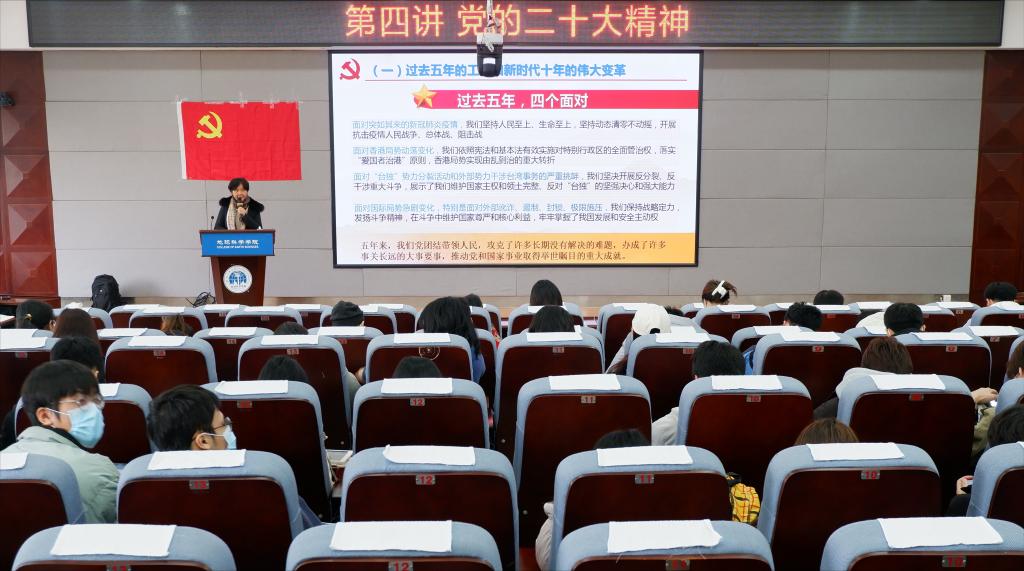 此次党课熊英院长从五方面进行授课,一是党的二十大概括。熊院长从党的职能职权、时间维度、导向引领三个层面讲述了党的二十大召开的重要意义。二是党的二十大重点内容解读。大会强调了高举中国特色社会主义伟大旗帜,全面贯彻习近平新时代中国特色社会主义思想,明确了弘扬伟大建党精神,自信自强、守正创新,踔厉奋发勇毅前行,为全面建设社会主义现代化国家、全面推进中华民族伟大复兴而团结奋斗。三是二十大报告中11个引人关注的提法。熊院长逐个讲解每个引人关注的提法,并指出全面建设社会主义现代化国家,是一项伟大而艰巨的事业,前途光明,任重道远。四是党的二十大报告中10个振奋人心的金语。每个金句都是中国共产党和中国人民依靠自己的力量团结奋斗实践得来的,贯穿其中的一个基本点就是中国的问题必须从中国基本国情出发,由中国人自己解答。新时代十年的伟变革在党史、新中国史、改革开放史、社会主义发展史、中华民族发展史上具有里程碑意义。五是从党的二十大中汲取前进力量。青年是祖国的未来、民族的希望。青年要深刻领悟习近平总书记对广大青年的殷切寄语,自信自强、守正创新,为全面建设社会主义现代化国家、全面推进中华民族伟大复兴贡献青春力量