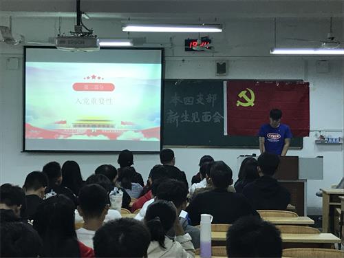 为了让新生更好地融入大学生活、了解党组织以及鼓励新生积极加入党组织,2019年11月5日本科生第四党支部在雁山校区05207举办了新生见面会,本次参会对象为2019级生物工程专业全体新生,见面会由黄珊珊同志主持。