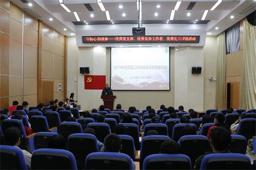 活动伊始,学院党委副书记李南发表讲话。他提出,本次活动开展的两个主要目是评优和促建,评选出优秀的党支部、党员、党务工作者是对这一年大家党建工作的认可。通过评选来促建,在评选中发现自己的缺点与不足,通过批评与自我批评认识自身缺点并改正,完成自我建设。他强调,全体党员都应始终不忘初心、牢记使命,做好党员该做的事情,起先锋模范作用。他指出,党支部内普遍存在懒散和缺乏交流的问题,支部内成员做事拖沓,不利于发挥先锋作用;交流过少,不利于党务工作的进行。他希望,党员们能提高工作积极性,利用好党支部这个交流平台,共同做好党建工作。