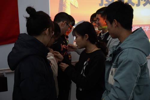 正式党员为预备党员佩戴党员徽章