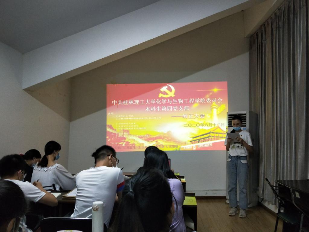 本科生第四党支部于雁山校区09607会议室召开预备党员转正大会,对刘志飞等4名预备党员的转正问题进行审议和表决。大会由王少杨同志主持,支部书记梁精华出席本次会议,支部全体党员参加本次大会。
