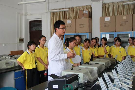 近年来在思想引领、科技文化、发明专利等等教学成果,紧接着进入虚拟仿真实、材料结构解析等实验室参观,参观过程研究生们对各实验进行了详细的概况,同时耐心地给中学生们解答了疑问,极大地提高了他们对科技创新的认知。随后,全体师生一起去看了互联网+、创青春路演答辩会,答辩人员通过ppt的形式,分别从市场分析、产品特色与工艺、产品优势等方面介绍他们的项目内容,使场下的同学了解了大学生创新创业相关信息。