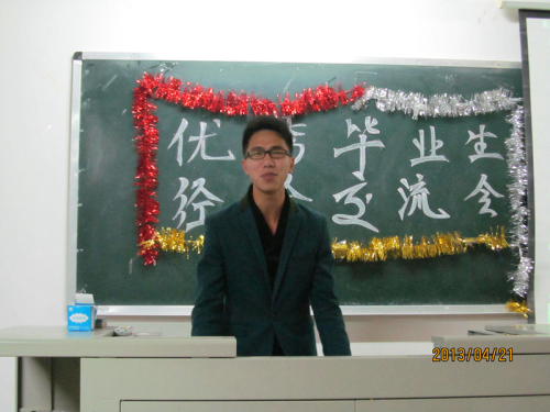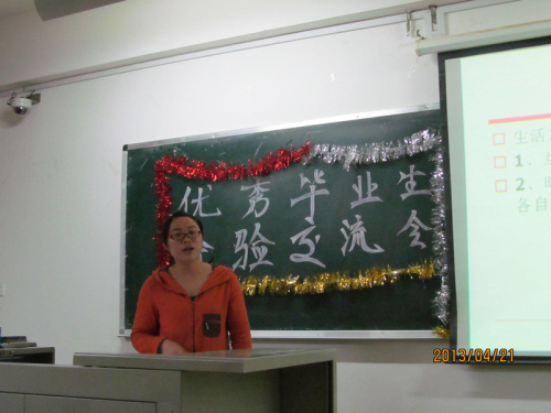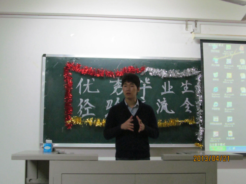 在雁山校区05203教室举办了以“资助育人、感恩回馈”为主题的优秀毕业生经验交流会。出席本次交流会的有12级辅导员何宗辉老师,09级优秀毕业生秦冬霞、夏迎春、秦磊、邵泽辉四位同学,以及卓越班的全体同学。