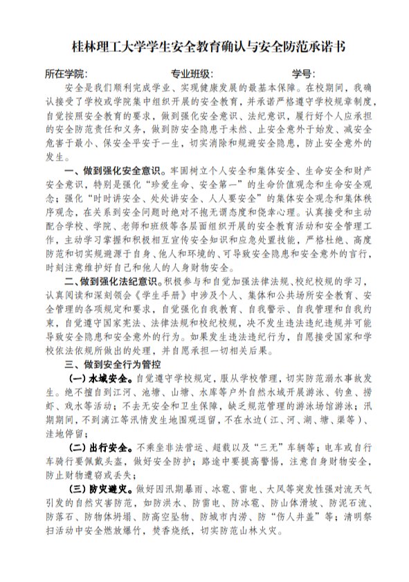 安全无小事,生命重如山。安全是一名大学生完成学业的重要保证,更是每一位大学生健康成长的基本条件,作为大学生,必须重视安全教育,增强自我保护意识,预防校园侵害,提高自护自救能力,针对当前普遍存在的大学生财产安全意识薄弱、轻信他人、财物保护观念差的现象,学院积极开展各项安全教育活动,组织全院学生签订安全承诺书,提高私房俱乐部