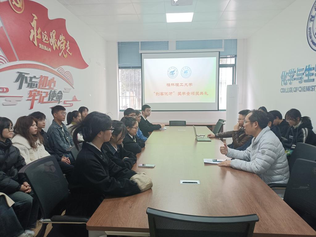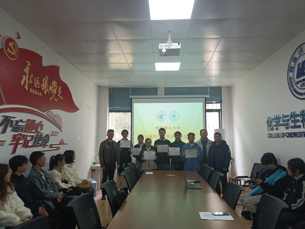 在雁山校区12115会议室举行2023年“创客优才奖学金”颁奖典礼,对能源化学工程专业的陈欣茹、陈雪兰、李玉、熊昊、梁文军、冯桂斌6位品学兼优学生进行表彰。能源化学工程专业温玉清、黄斌、陆振欢3位老师和20余名学生代表参加了此次颁奖典礼。