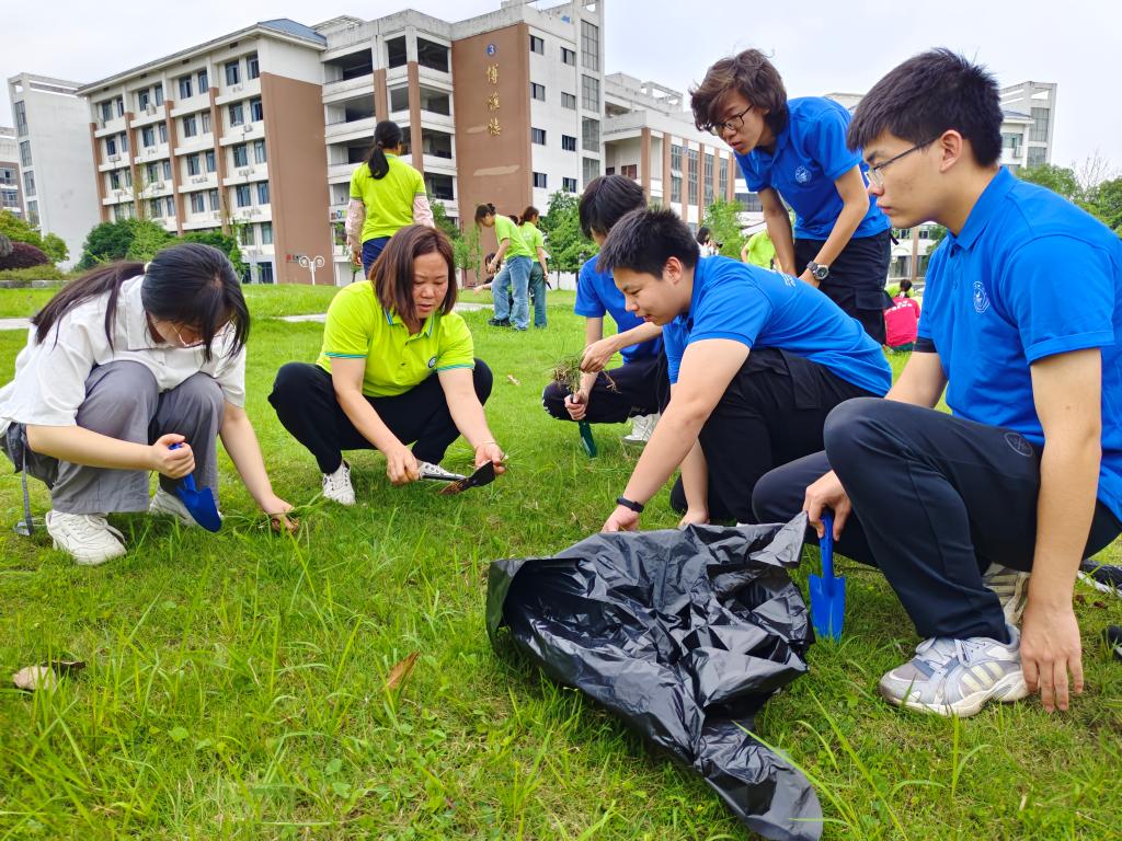 学院开展“拔草除杂 美化环境”劳动实践活动