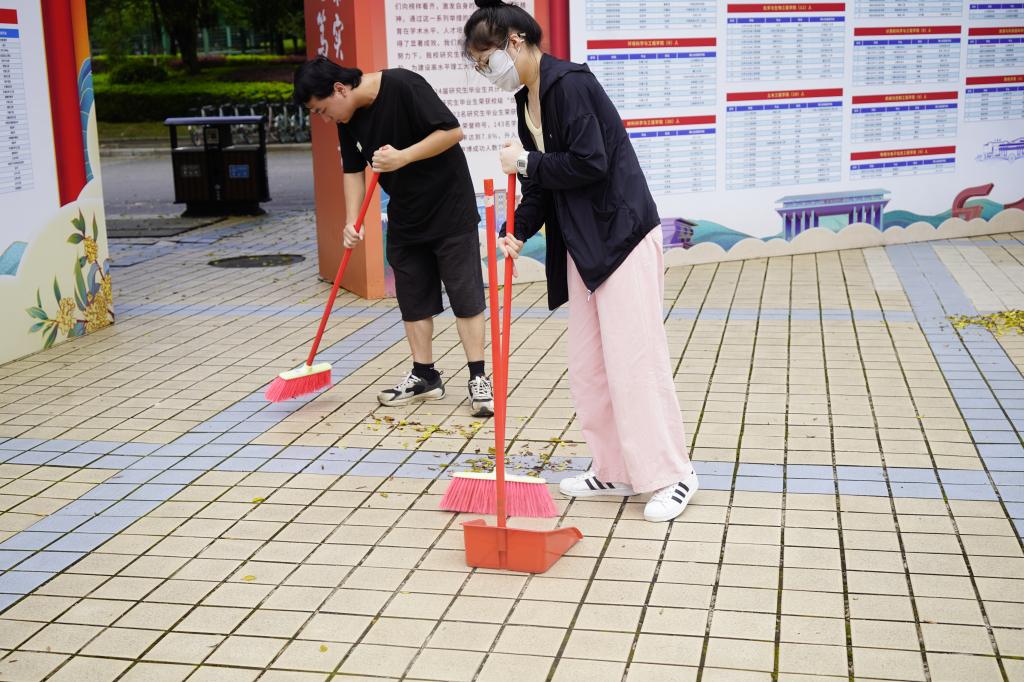 在二号组团食堂门前进行了春季学期第三次校园清扫活动,学院共50名同学参与本次活动。