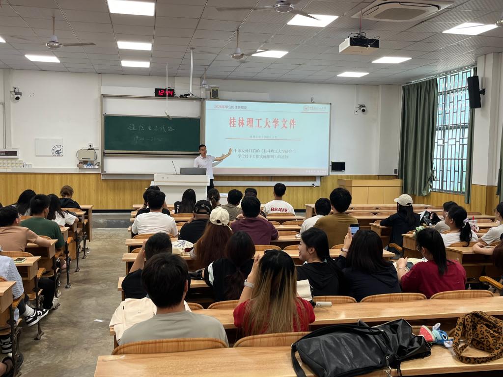 为做学院2025年暑期研究生离校、留校安全教育工作。7月8日中午,学院在雁山校区06104、06105教室同时召开2025年研究生暑假离校暨暑假留校安全教育大会。学院副院长孔翔飞、研究生辅导员黄道坤、马亚博与全体研究生参加了会议。