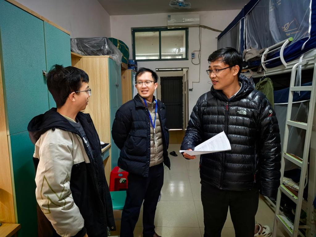 李少华一行对“一站式”学生社区公共区域及全部学生宿舍进行拉网式排查。对于学院社区平台,重点检查消防设施是否完好、疏散通道是否畅通、用电用水是否规范;对于学生宿舍重点检查宿舍通道物品摆放、电器规范使用及卫生环境状况。检查过程中,对发现的问题现场记录并提醒学生立即整改,坚决杜绝安全盲区。同时,辅导员们走进学生宿舍,与返校学生亲切交流,详细询问假期生活、课程安排及返校适应情况,针对学业规划、就业准备等学生关切问题提供个性化指导。
