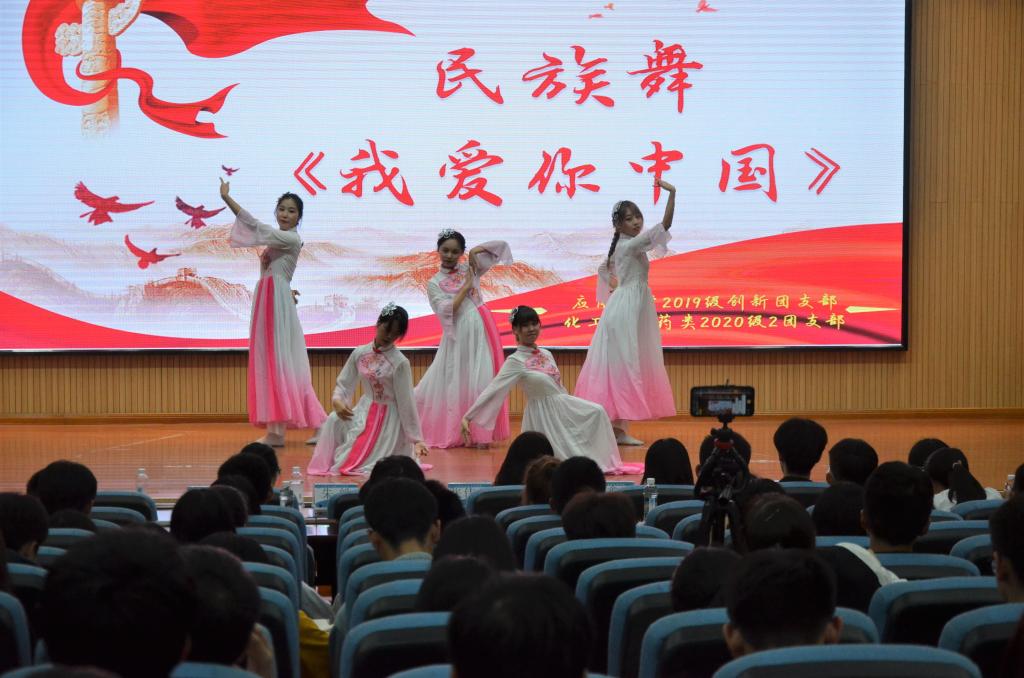 欣赏完意义深刻的小品,支部成员又为我们带来民族舞《我爱你中国》,表演者用娴雅的舞姿诠释了对祖国的热爱。