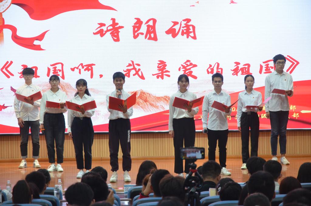 在全体人员满怀激情唱响共青团团歌后,团日活动由此拉开序幕。首先,支部成员声情并茂的朗诵《祖国啊,我亲爱的祖国》,诗中表达的爱国之情引起了在场观众深切的共鸣。
