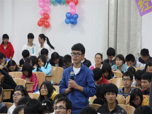 交流会伊始,饶筠筠老师用深入浅出的语言和大家分享了今年暑期去“三下乡”的点滴和收获,让在场的同学进一步认识了“三下乡”,更加向往“三下乡”。紧接着,暑期三下乡实践队员石才洋和苏蝶通过播放精彩的视频和生动的PPT分别向在场的同学讲解了 “科技兴农村,实践强化生”和“美丽广西,清洁乡村”两个实践团队的收获和感触,让现场的氛围达到了高潮。在观众互动环节,同学们积极踊跃的和暑期三下乡实践团队成员互动,并表露出了要参加明年暑期三下乡的强烈愿望。之后,饶筠筠老师对此次交流会进行了总结。