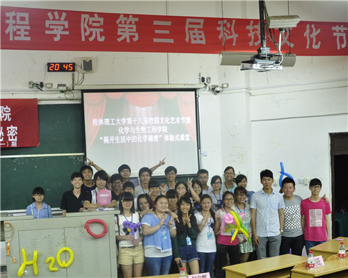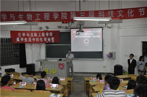 导航痕迹 当前位置: 私房俱乐部 >> 学生工作 >> 共青团 >> 正文 科技畅想青春未来 文化彰显化生风采――――化生学院成功举办“揭开生活中的化学秘密”体验式课堂活动 作者: 发布日期:2015-07-19 浏览次数: 为丰富校园文化生活,提高学校同学对化学学科的兴趣,24日晚7点,化生学院在雁山校区05103教室举办了私房俱乐部 第十八届校园文化艺术节之“揭开生活中的化学秘密”体验式课堂活动。学院何宗辉老师、学院研究生会副会长张海峰以及各兄弟学院团委学生会代表作为嘉宾与学院同学一同参加了此次活动。 何宗辉老师首先致开幕词,他说到在理工科院校开展大学生科技活动具有很大的意义,对于提升同学们的专业知识素养起到很好的促进作用,他希望同学们能够以此类活动为契机,体验化学的奥秘,寓学于乐,培养自己对化学学科的钻研精神。接着主办方为大家播放了《进击的化学》宣传片,神秘新奇的化学实验现象,博得在场同学的阵阵惊呼。接下来张海峰同学结合PPT带领大家从生活食品类、生活衣物类等方面走进化学,揭开生活中的化学秘密,使大家对生活中的化学有了一个全新的认识。在课堂讲解后进行了实验展示环节,实验操作人员先后为大家展示了电池生火、可乐喷泉等现场实验,最后是观众互动环节,同学们积极踊跃参与答题,把现场气氛推向了最高点。 此次活动以生活中的化学为载体,引导学生去探讨科学,给同学们展示了化学的神奇与美妙,激发了同学们对化学的兴趣,并提高了大家的专业文化素养,为学院的学风建设起到积极的促进作用。 何宗辉老师发言 活动现场 活动现场2 实验展示 合影 上一条:班之魅力,刊动奇迹――化生学院成功举办班刊设计大赛 下一条:化生学院举办“快乐运动,快乐学习”趣味运动会