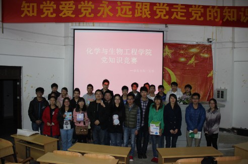 本科一支部于11月29日晚上7:30在05101教室隆重举行“知党、爱党、永远跟党走”为主题的党知识竞赛。学院12级辅导员何宗辉老师及各支部代表、各年级同学到场观看了比赛。