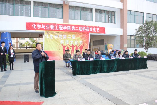 科技时代,创新化生。12月19日下午,化生学院第二届科技文化节开幕式暨“蛋蛋的忧伤”广场活动在雁山校区三栋广场隆重举行。学院党委书记胡祖生、党委副书记陶剑飞、副院长杨建文、各级辅导员及各兄弟学院团委学生会主席作为嘉宾参加了开幕式。