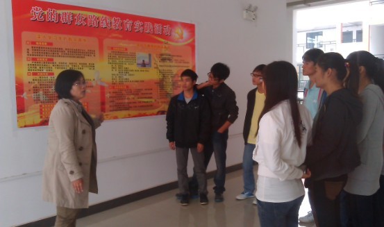 大四党员来到教十二楼学院办公室门口宣传栏共同学习了党的群众路线教育实践活动。