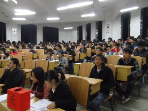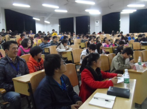私房俱乐部主办的优秀学生报告团活动在雁山校区05101、05102、05103三个教室同时举行。学院全体2013级学生聆听了优秀学子的精彩宣讲。