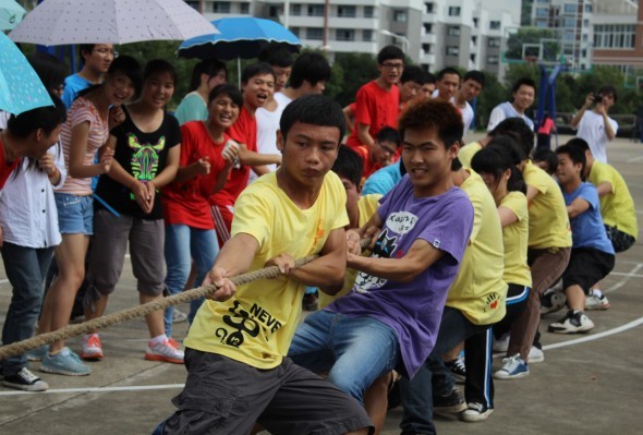 上午9:00,开幕式在足球场主席台准时开始。何宗辉老师在开幕式上希望同学们在活动中,展示自我,增进交流,收获友谊。在运动员代表以及裁判员代表发言后,比赛正式开始。本次趣味运动会将竞技与娱乐结合一体,上午进行的是拔河比赛,下午进行的是“杯水传情”、“猪八戒背媳妇”、“慢骑接力”以及“铺路搭桥”四个项目。在工作人员的得力组织安排下,各个项目的比赛紧张有序地进行,各参赛团队的队员们热情高涨,奋勇争先,现场的拉拉队阵阵加油声也响彻运动场。每一个比赛项目都在智慧与运动中,散发着团队协作的无限魅力。经过激烈的角逐,拔河比赛环节获得前三名的分别是生物10级、应化11-1班、研究生代表队。在趣味运动环节获得前三名的分别是化工11-2班、化工12-4班、应化12-1班。