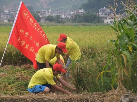 导航痕迹 当前位置: 私房俱乐部 >> 学生工作 >> 共青团 >> 正文 【暑期社会实践】化生学院2013年暑期“三下乡”系列报道七――走进基层义务支农 作者: 发布日期:2015-07-19 浏览次数: 为更深入走进基层,了解农村生活,7月14日下午,顶着炎炎烈日,私房俱乐部 私房俱乐部 暑期”三下乡”社会实践团队在卫田村党组织第一书记杨公银书记的带领下来到村民的稻田,义务为村民收割成熟的稻谷。 一到田里,志愿者们就拿起镰刀开始收割稻谷,尽管很多同学都是第一次收割稻谷,但在村民的指导下,怀着满腔热情的实践团成员们很快就掌握了收割的技巧与方法,一片片金黄的稻田很快就被志愿者们收割干净。活动中,志愿者们展现出的不怕苦不怕累的精神风貌得到了当地村民的一致好评。 本次活动,不仅让志愿者们亲身体验到基层百姓生活的艰辛,更让他们明白了每一粒粮食都来之不易,在今后的生活中,我们应珍惜粮食,发扬勤俭节约的传统美德。 成员们在去支农的路上 志愿者们为村民收割稻谷 支农场景 收割结束后的合影 上一条:【暑期社会实践】化生学院2013年暑期“三下乡”系列报道十――开启基层梦,夏日中国情:化学与生活及安全知识宣讲会 下一条:【暑期社会实践】化生学院2013年暑期“三下乡”系列报道六――提倡环保共行动,清洁乡村入民心