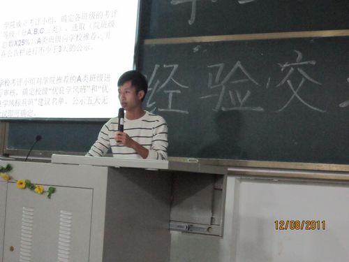 于12月8日晚7:30,在雁山校区06408顺利召开了学干经验交流会。11级辅导员杨建辉老师到场参加了此次交流会。