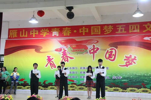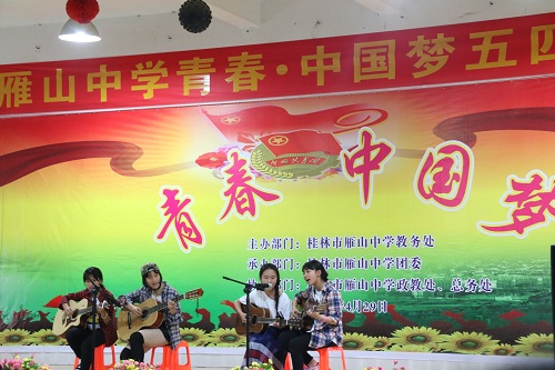 团委学生会组织志愿者与桂林市雁山中学一同举办“雁山中学青春·中国梦五四文艺汇演”活动。