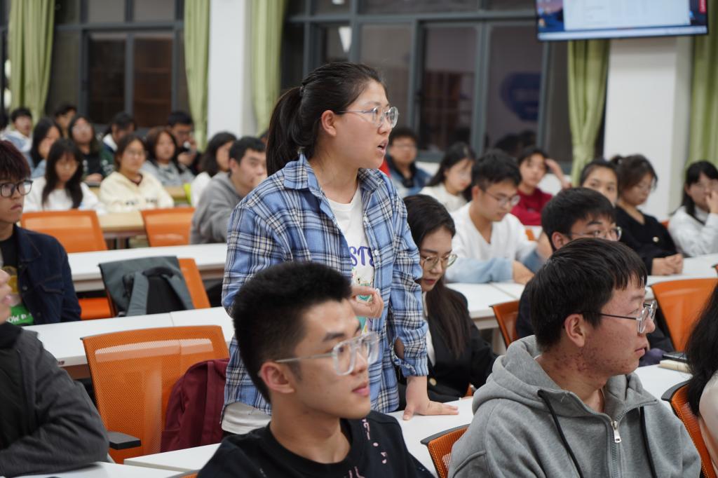 学校团委副书记饶蠡从为什么?是什么?怎么办?帮助和引导项目团队成员理清项目思路,抓住问题和关键点,并结合近年来理工科专业参赛情况进行了经验分享和交流。校团委科技实践部苏相丁结合比赛评审要求为学员们梳理了项目模块和具体内容。