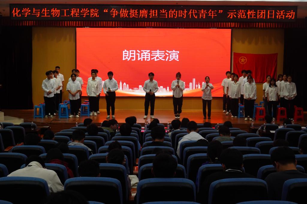 在雁山校区图书馆报告厅举办以"争做挺膺担当的时代青年"为主题示范性团日活动。学院团委副书记王凯浩、兼职辅导员于湘,学院团委组织部负责人、新生班长、团支书和团员青年代表参加本次活动。