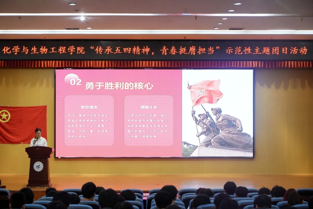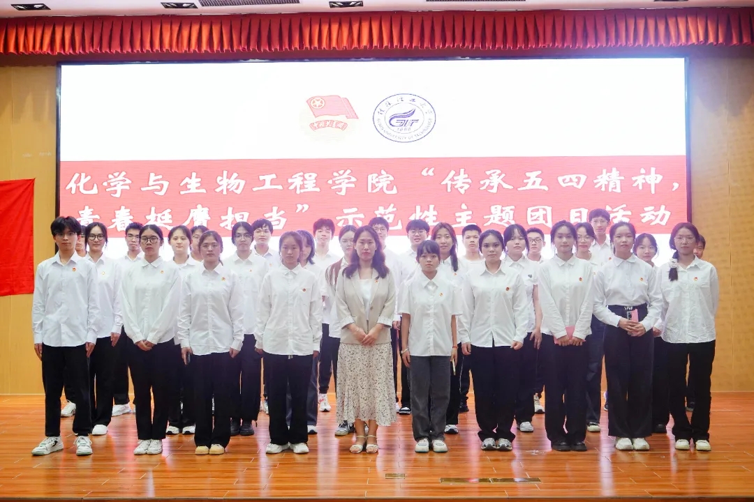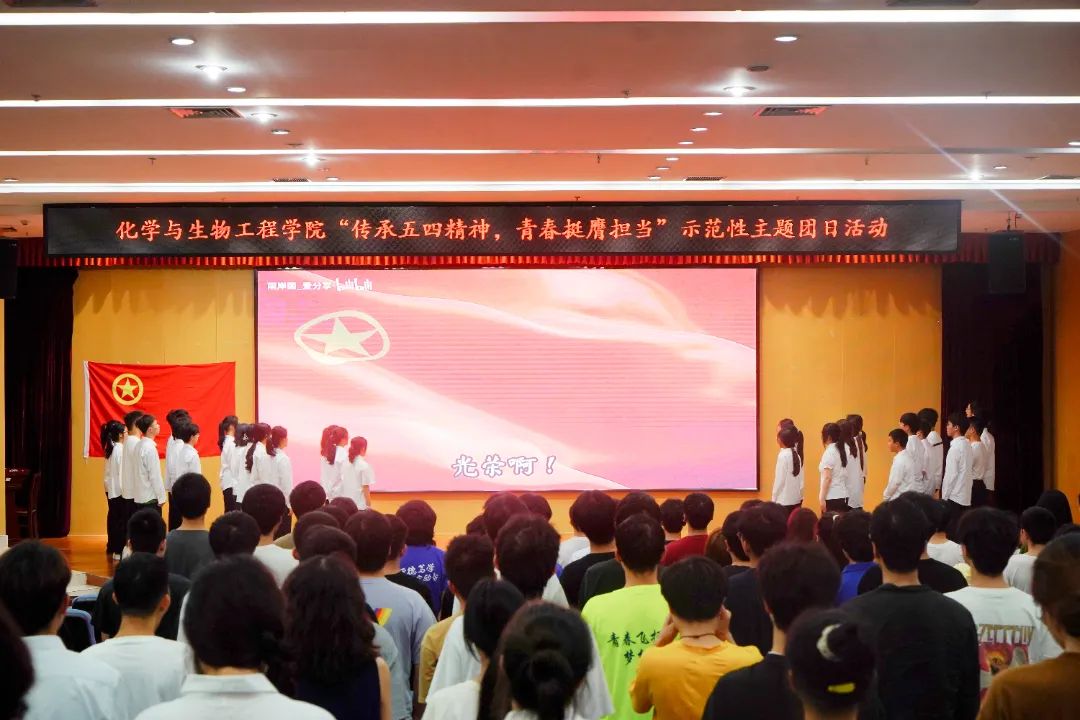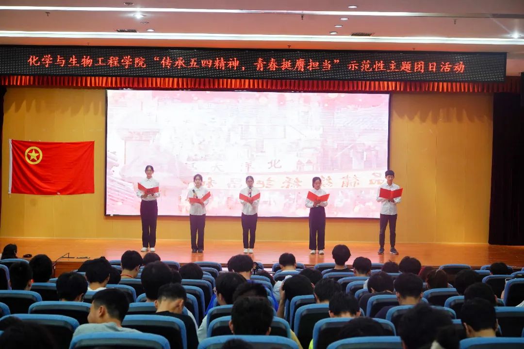 在雁山校区图书馆报告厅举办了以“传承五四精神,青春挺膺担当”的大型团日活动。学院团委副书记张伟颀老师,能源化学工程2023-超融合实验团支部全体成员,以及200名团员青年参与本次活动。