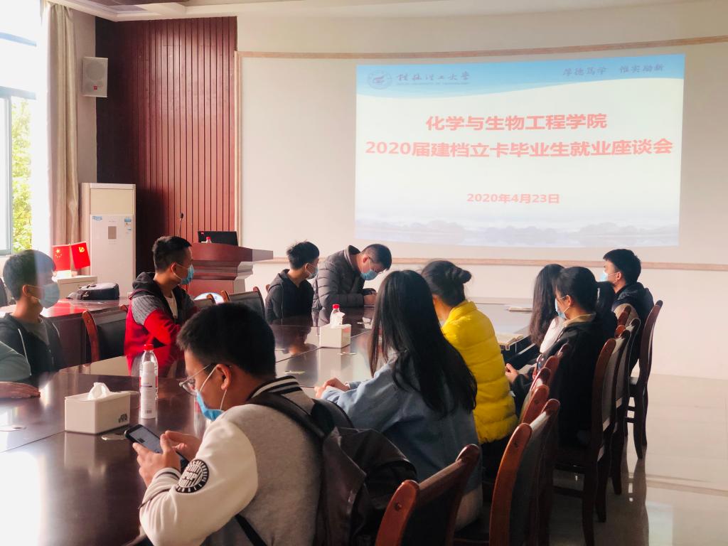 在雁山校区12217会议室召开2020届建档立卡毕业生就业座谈会,学院毕业班辅导员黄道坤老师出席并主持会议,学院建档立卡学生代表参加会议。