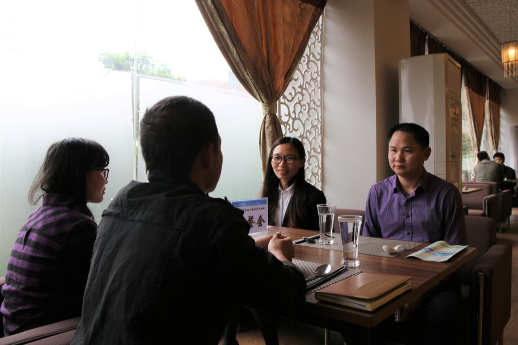 于4月25日中午在雁山校区致远楼“雅诺”主题餐厅举办企业家午餐会。邀请了诸多成功企业家与学生一齐共进午餐,深入交流,增进了解。
