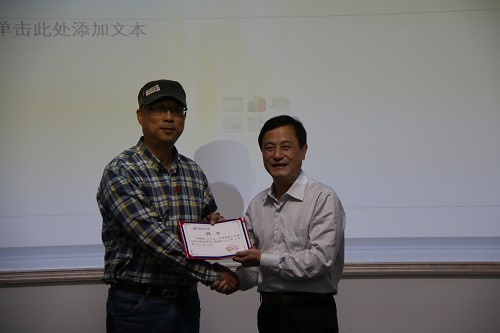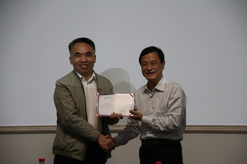 学校副厅级调研员张劲松为广东四方威凯科技集团董事长、广东江门湖南商会会长方芳颁发聘书