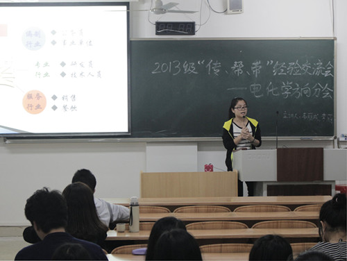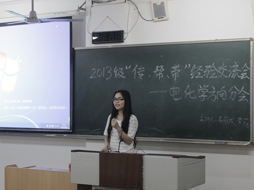 在06308教室举行了一个电化学方向的2013级“传、帮、带”经验交流活动。