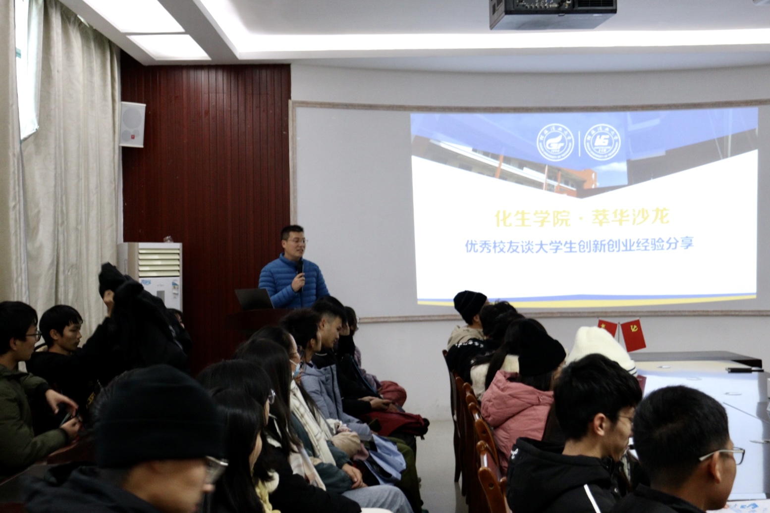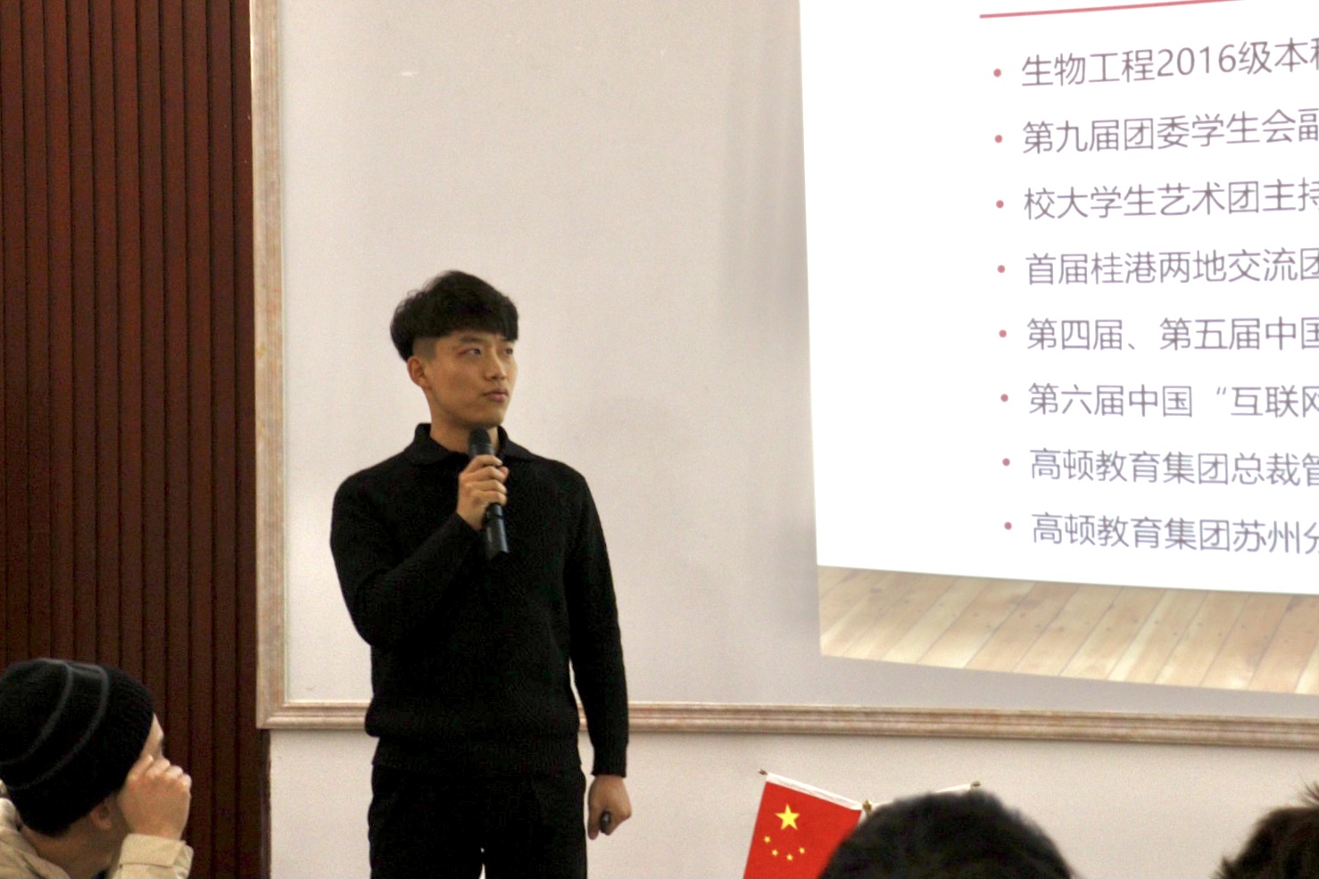 随后,生物工程2016-1班校友王一以学长的身份对与会同学分享了大学时期参与“互联网+”大赛历练自己综合素质能力的经验和启示。沙龙活动现场氛围活跃,各位师兄耐心解答和鼓励开阔了同学们的视野,解决的同学们专业上的困扰,同学们受益匪浅。