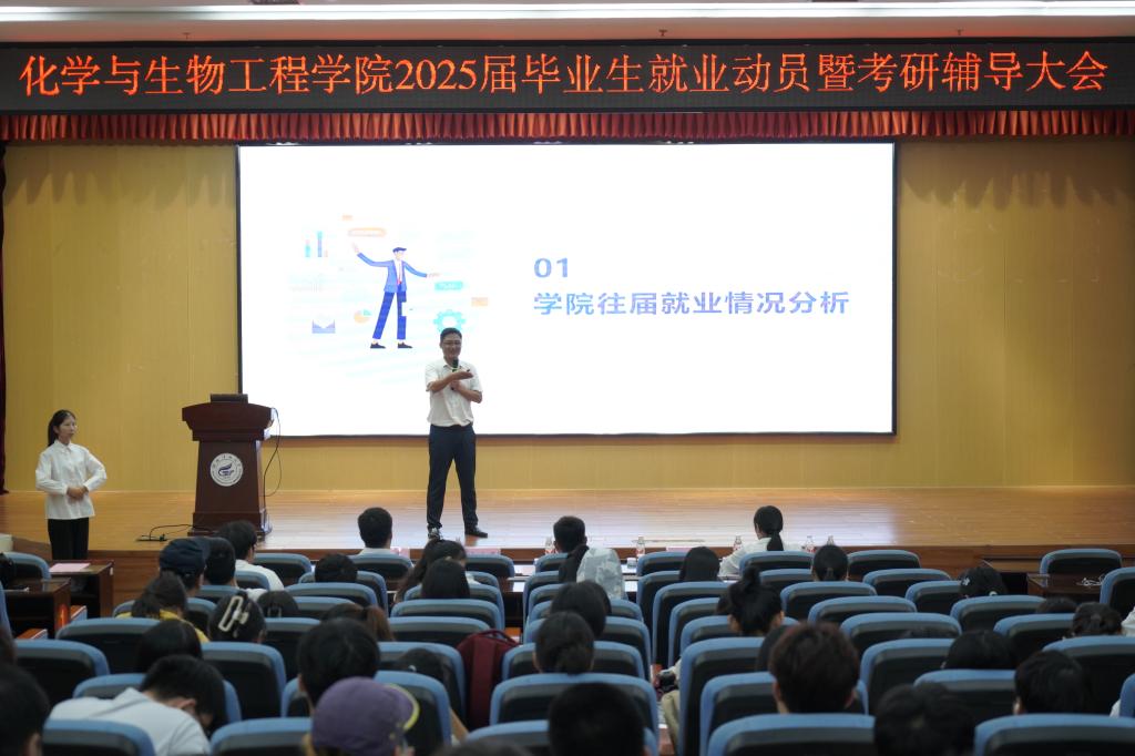 10月16日中午,学院在雁山校区图书馆报告厅召开了2025届毕业生就业动员暨考研辅导大会。学院党委书记彭代江,院长匡小军,党委副书记李少华,副院长李霞、何方、孔翔飞出席,2021级辅导员陈千癸、2024届优秀毕业生苏宸及2025届本科生参加。