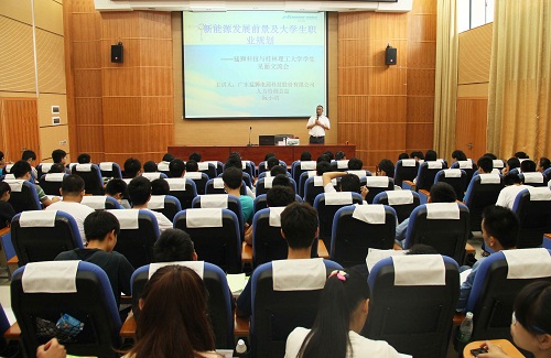 阮小滔总监用简单的提问和幽默的语音开始今天的讲座。首先,他简单的概括了人类使用能源的历史,介绍了几个世界大国的能源发展方向。其次,他以自身发展经历对大学生职业素养和规划提出了看法:大学生首先应该具备一定的专业基础、思维、学习等各方面的能力;除此之外,大学生应该端正态度,学会做人,学会做事;最重要的是,在未来的就业道路上,要有自己的梦想。在此过程中,阮小滔总监结合身边的事例进行讲解,博得同学们阵阵掌声。随后,他给了同学们关于面试时的一些技巧及注意事项,耐心回答同学们的疑问。讲座在同学们的掌声中圆满结束。