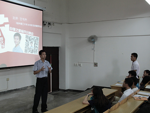 学生自立自强、努力奋斗的良好品质,2014全国大学生自强之星标兵获得者、我校旅游学院2011级学生甘书杰应邀在雁山校区05102教室为私房俱乐部