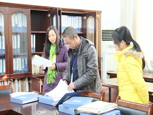 第三环节,梁军书记在雁山12217会议室根据学院评估档案目录,随机抽查了教学计划、毕业设计总结、教学工作记录等材料,材料组的工作人员能够快速提供相应的材料。通过抽查发现学院各类材料齐全,归档有类,存放有序。