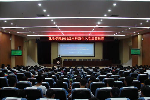 于9月29日下午在雁山校区图书馆报告厅举行了2014级新生入党启蒙教育大会,学院党委书记梁军为新生做了题为“我志昂扬,党心飞扬”的精彩报告,会议由学院团委副书记、14级新生辅导员饶筠筠主持。