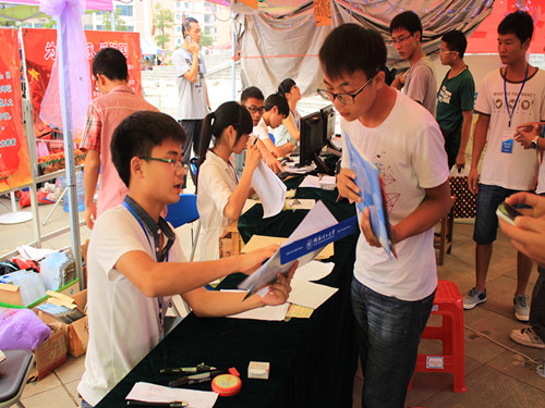 九月的骄阳也挡不住志愿者们的热情,在烈日下,志愿者们汗如雨下也毫无怨言。他们顶着烈日的烘烤在新生下车处等待,从新生下车到办理各种注册手续再到帮他们将行李提到宿舍,志愿者们为新生提供了最全面的一条龙服务。他们将一杯杯清水端到新生家长们的面前,自己却顾不得喝上一口,他们的无私奉献的精神,充分体现了私房俱乐部